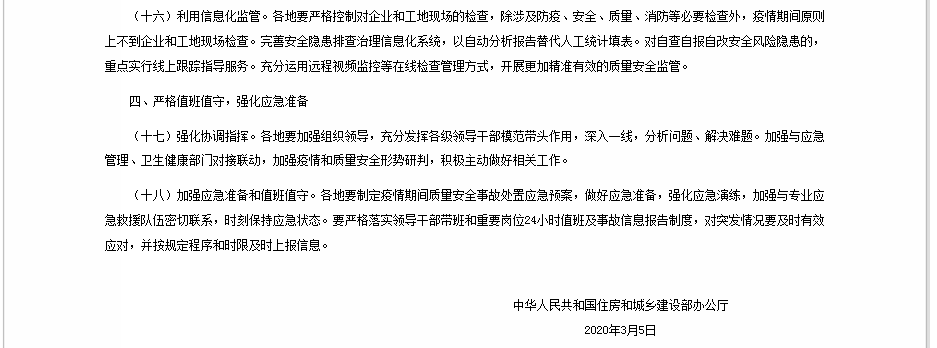 關(guān)于加強(qiáng)新冠肺炎疫情防控期間房屋市政工程開復(fù)工質(zhì)量安全工作的通知